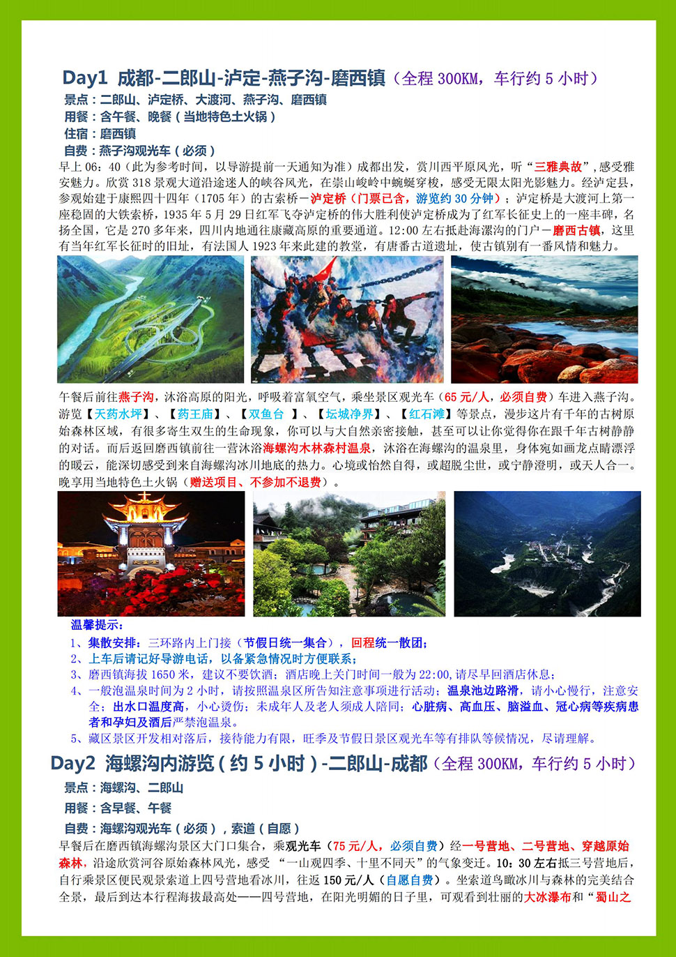 海螺沟、燕子沟真纯玩温泉2日游