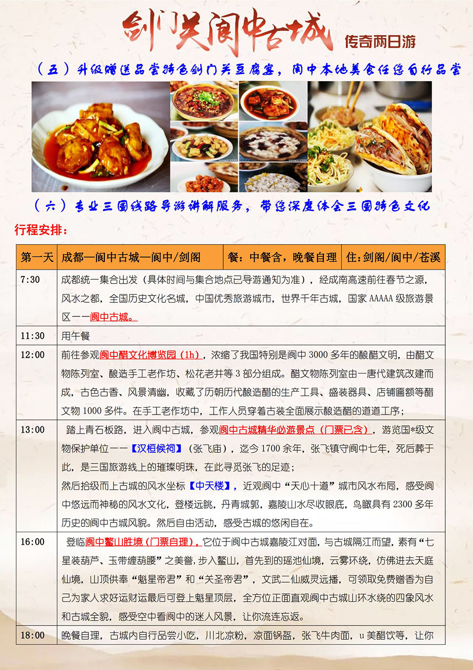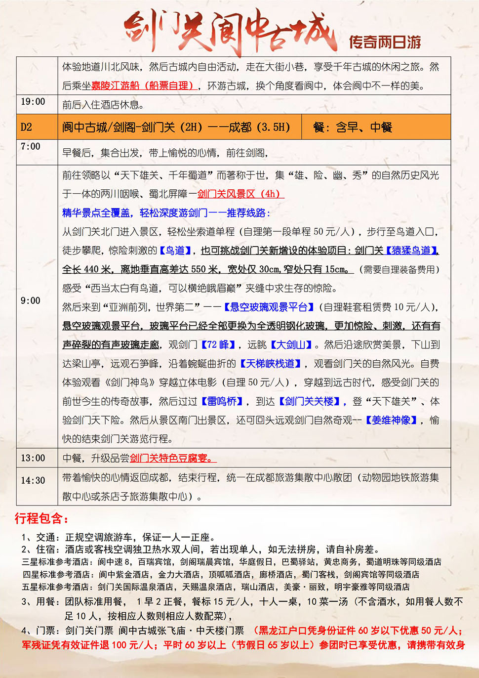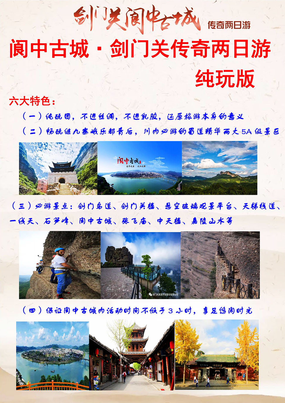 - 【主要景点】剑门关、阆中古城