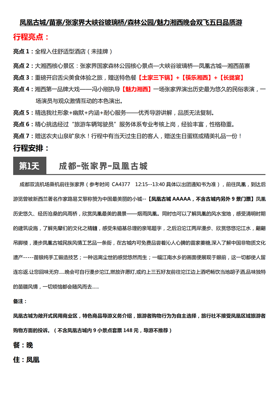 - 【核心景点】张家界国家森林公园—大峡谷玻璃桥—凤凰古城—湘西苗寨